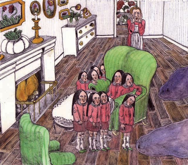 Lady Noonan har problem med både vattenläckor och sina tolv flickor. En ny surrealistisk bilderbok för vuxna av Emelie Östergren. Helt på engelska.