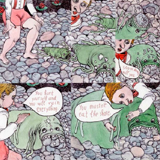 Rock-eating monsters, missing boxes, narrow tunnels, dripping cliffs, dumb dolls, smiling piles of sand, talking rocks, goosebumps and potent mustaches. Critically acclaimed Emelie Östergren is back in excellent book form!