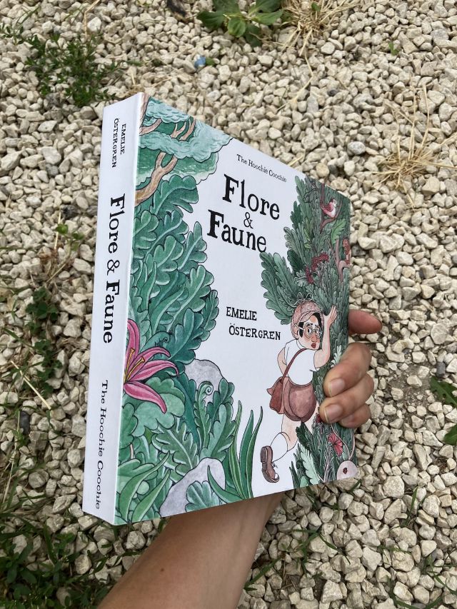 Par ses couleurs volontairement passées, par son dessin faussement enfantin, et par l’invocation et la réactivation de légendes anciennes afin de servir son propos, les romans graphiques surréalistes d’Emelie Östergrenévoquent l’art du grand Topor. Si les apparences se font moins ouvertement cruelles, il ne faut néanmoins pas se méprendre sur l’objet du présent livre : Flore et Fauneest une dérive psychique, impliquant la vigilance totale du lecteur tant chaque élément véhicule une charge symbolique. Et puis… il ne s’agirait pas vous perdre dans la forêt.