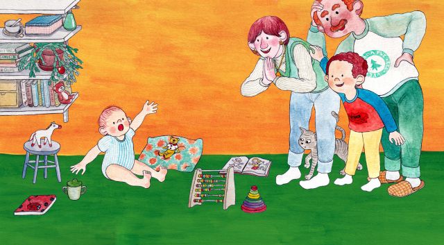 Gösta is good at many things! Yes, the whole family oohs and aahs over every progress that Gösta makes. And suddenly he starts talking. But what is Gösta saying…? Is it mom? Is it dad? Or is he perhaps singing a song?