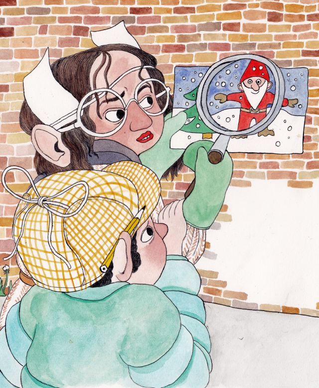 Miriam and Little Brother wake up on Christmas day and discover that the garden elf is gone! “He probably went on vacation,” says Grandma. But Miriam knows it’s impossible. In addition, the neighbor’s elf has also disappeared. What luck that they got detective stuff as a Christmas present - now they come in handy! The two detectives run away with magnifying glasses in full swing. Will they find the elves?